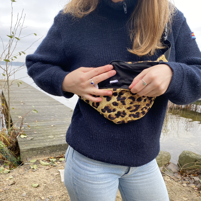 Bauchtasche mit Leoprint. In der Bauchtasche finden bequem Geldbeutel, Smartphone und Schlüssel oder Drehzeug Platz.