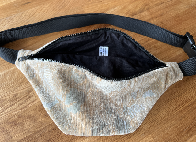 Bauchtasche aus Polsterstoff-Resten. In der Bauchtasche finden bequem Geldbeutel, Smartphone und Schlüssel oder Drehzeug Platz.